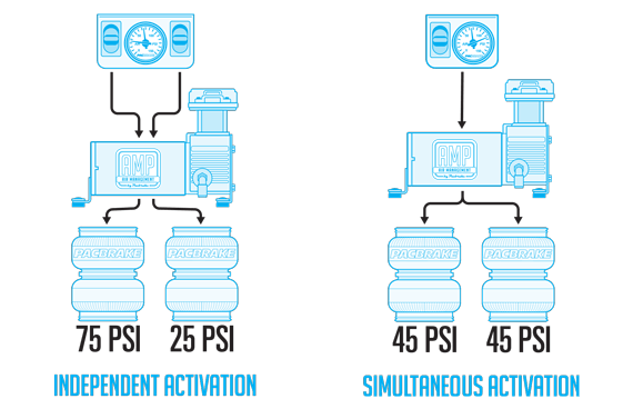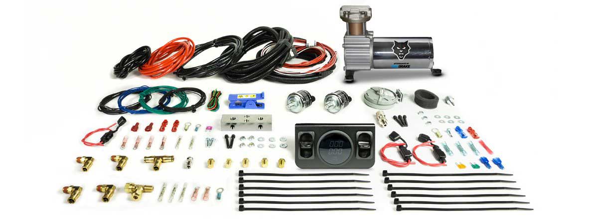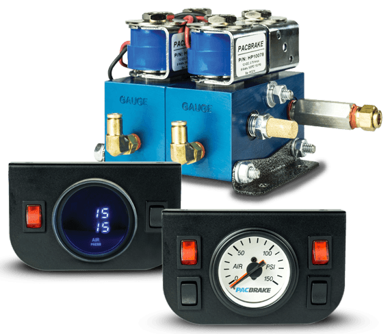 空气弹簧控制套件配备了所有你需要操作的空气弹簧(或其他气动附件),从您的智能手机与新的Pacbrake无线应用程序或从驾驶座位与Pacbrake驾驶室控制。