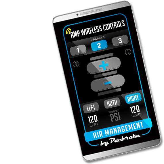 谁还需要遥控器?Pacbrake无线空气弹簧控制使您能够调整您的空气弹簧压力,从您的手机与触摸按钮。