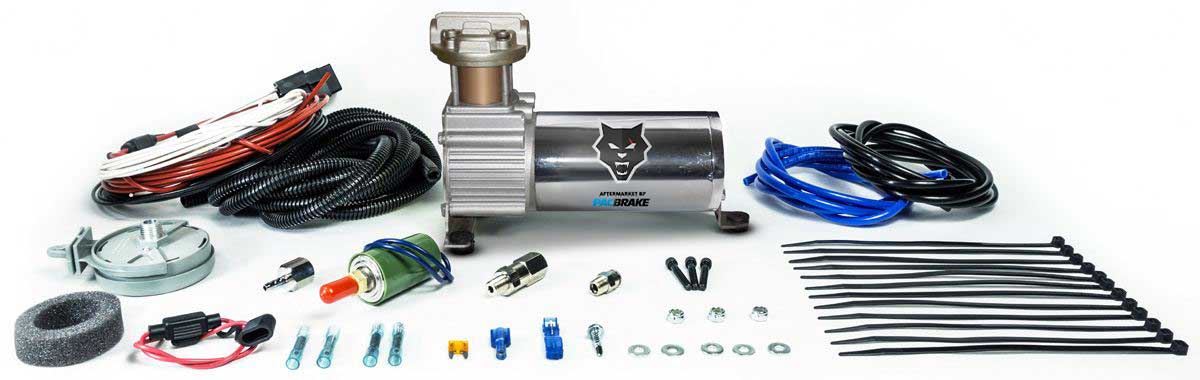 HP425系列-我们的1/4 HP Pacbrake空气压缩机有50%的占空比(开30分钟/关30分钟),并提供12 VDC。